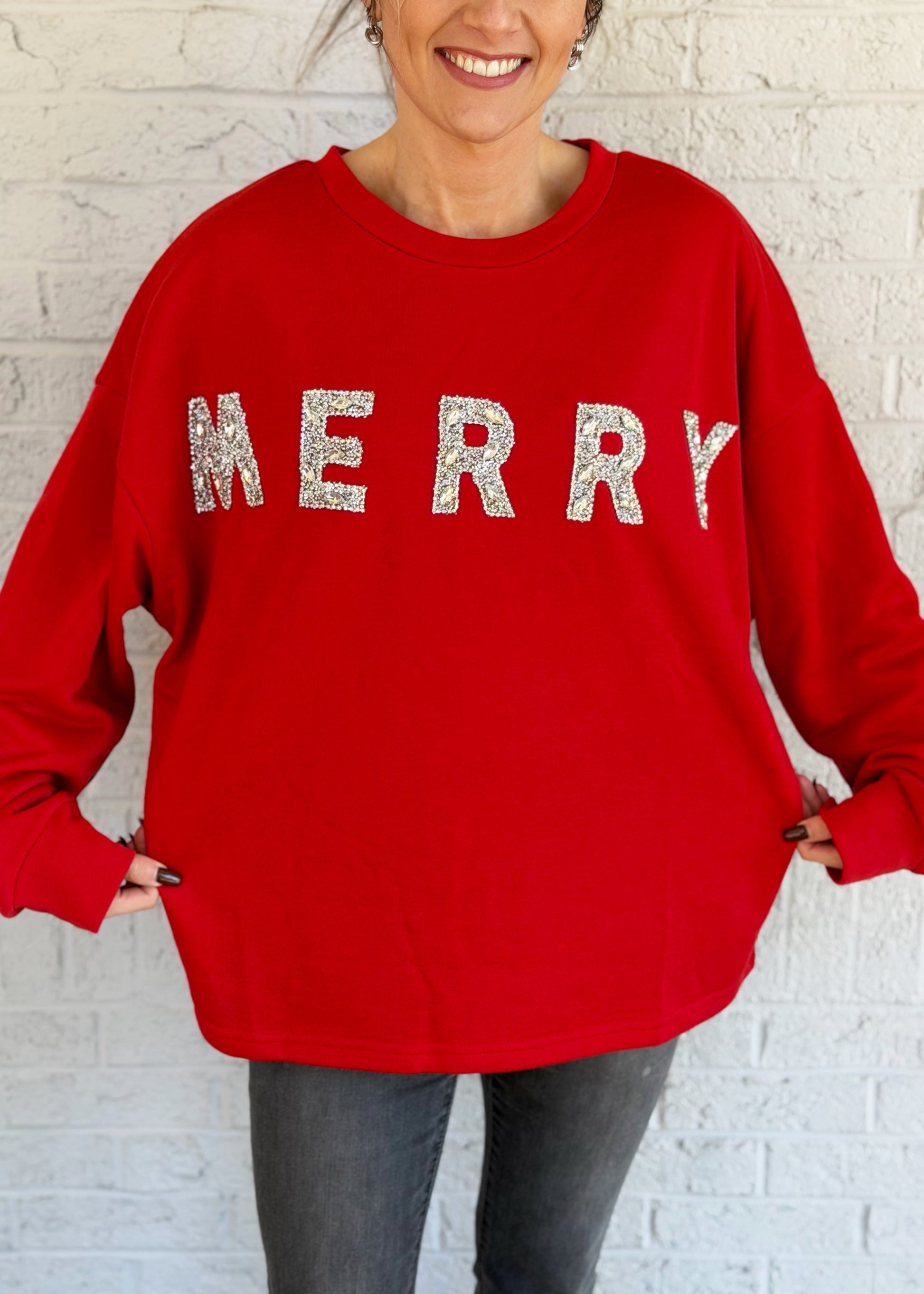 Elevate your holiday wardrobe with this sophisticated red pullover, adorned with jeweled embellishments that catch the light beautifully. The festive design strikes the perfect balance between elegant and celebratory, making it an ideal choice for seasonal gatherings, parties, or casual holiday occasions. Crafted for comfort and style, this versatile piece layers effortlessly and pairs well with your existing essentials. A timeless addition that brings warmth and sparkle to your seasonal collection.